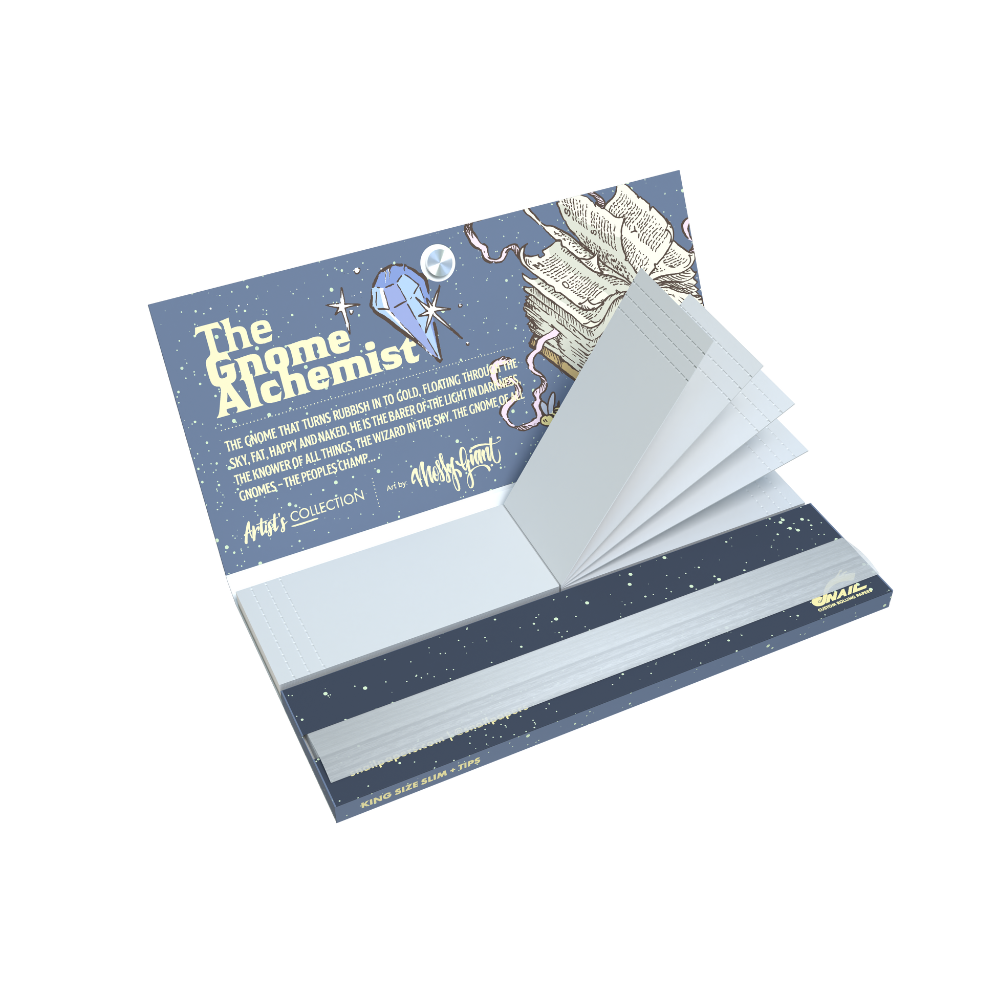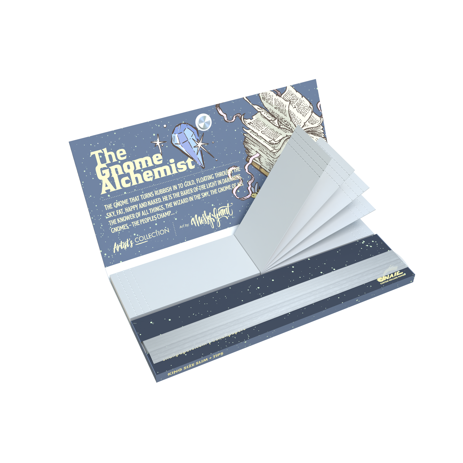 King Size Slim rolling papers with tips and magnetic closure from Snail Custom Rolling Papers are designed for smokers who value both practicality and premium presentation. This collection features our original designs, combined with a durable booklet and magnetic closing system that keeps your papers and tips protected at all times.