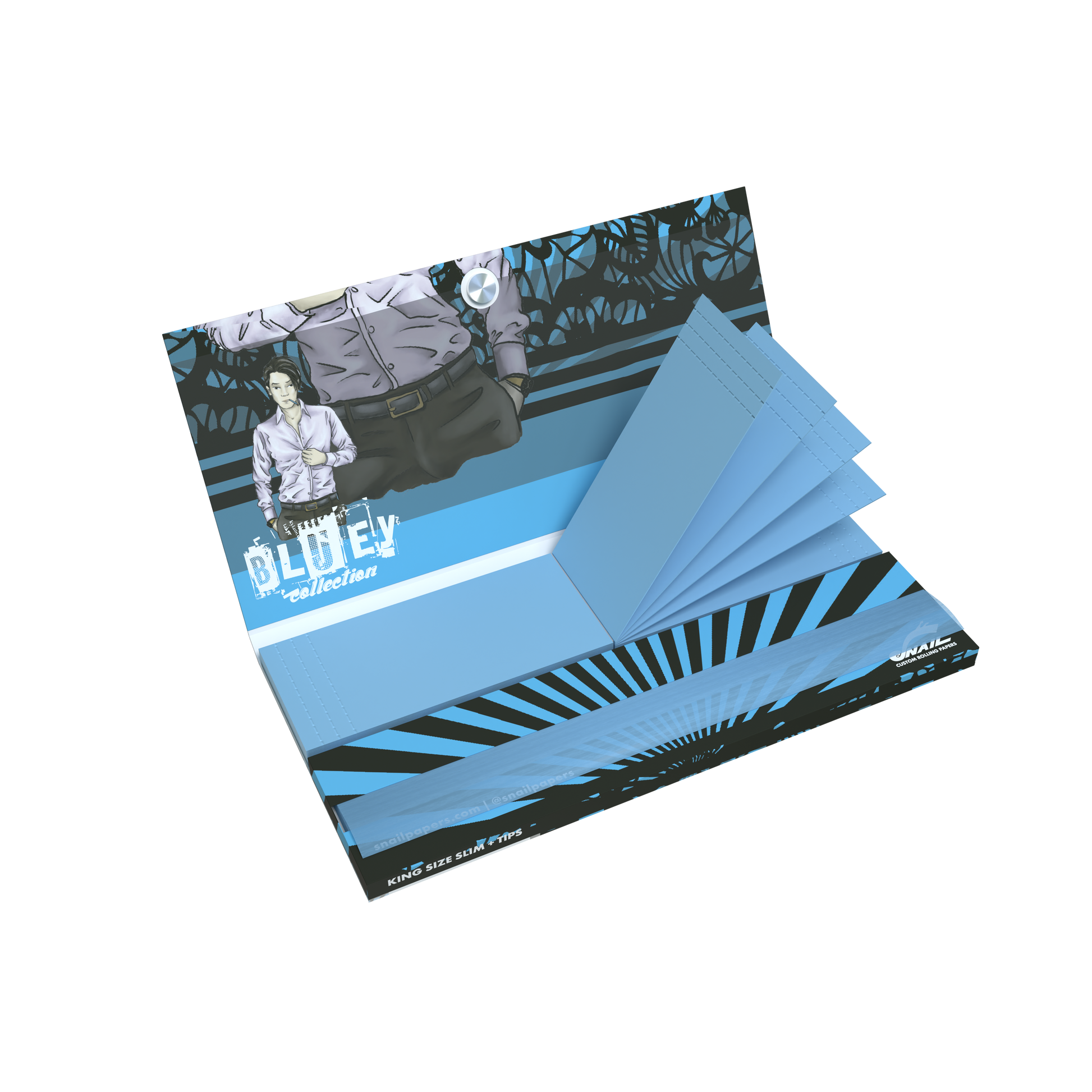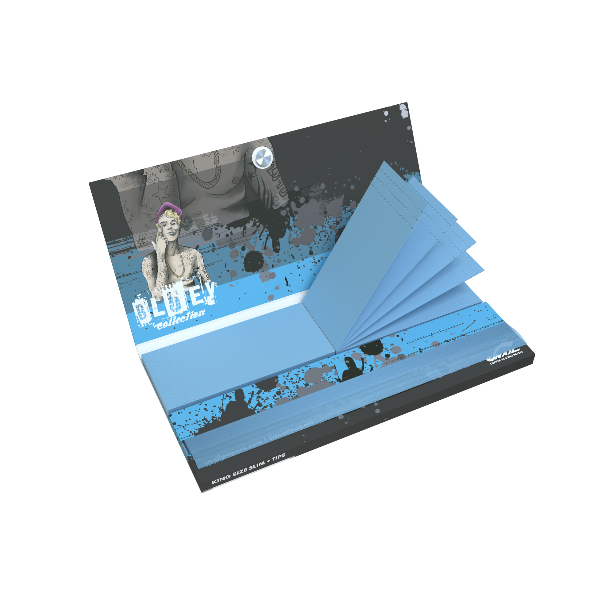 King Size Slim rolling papers with tips and magnetic closure from Snail Custom Rolling Papers are designed for smokers who value both practicality and premium presentation. This collection features our original designs, combined with a durable booklet and magnetic closing system that keeps your papers and tips protected at all times.