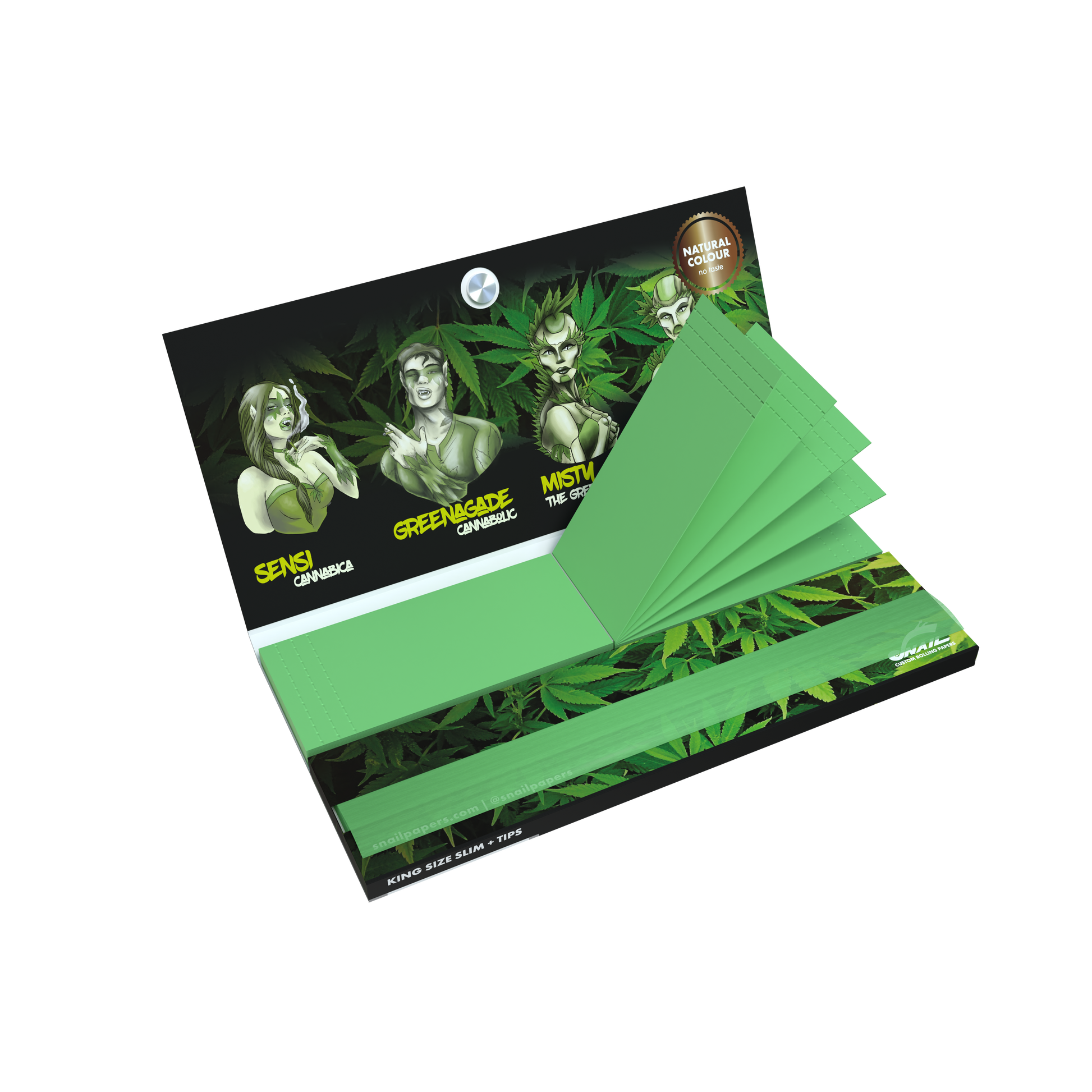 King Size Slim rolling papers with tips and magnetic closure from Snail Custom Rolling Papers are designed for smokers who value both practicality and premium presentation. This collection features our original designs, combined with a durable booklet and magnetic closing system that keeps your papers and tips protected at all times.